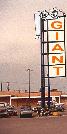 It was fortunate for me that this particular Giant Store had outlasted many other smaller chains which had died out earlier in the 1970s (other Giant Store locations included Peoria and Rockford, Illinois, and South Bend, Indiana), and was still around after I got my first car and could drive it to Cedar Rapids and elsewhere. But in the fall of 1980 I went back there...and was devastated to discover that it had just recently closed and was being fashioned into something else. The old Giant Store signage was still up, including the great parking lot sign using the character pictured in the print logo (see above), which I'd once seen lit up at night in multicolored neon, but it would have to come down soon. I went home feeling far less optimistic than when I arrived in Cedar Rapids that same day.