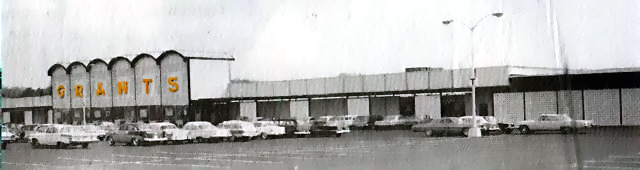 The W.T. Grant department store chain had a discount division called Grant City. This is one such store in Clementon, N.J.; I had the letters colorized in Grant's familiar orange signage to make them stand out in the picture. |