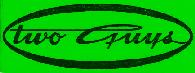 This Two Guys store in Marlton, N.J. was built in 1973, but the chain had other units going back to the 1960s. Also pictured here is a mock-up of one of their signs lit up at night, plus three of their old price sticker/newspaper ad logos from the early, middle and late 1960s (thanks to John Flack for supplying the last two ad logos and the sign pic!). |