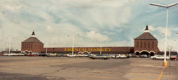 Adobe Photodeluxe was here too in the first picture; I used it to create a fairly-accurate reproduction of the French Market sign on the still-existent building. Below it is an artist's rendering, an actual partial picture of the storefront, and finally, another photo of the same building as a K Mart as it looked from 1970 until the Big K logo switch.