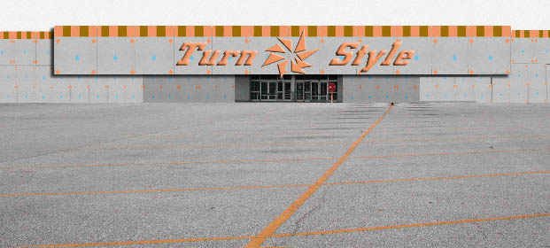 Pictured below are two Photoshop re-creations of the type of former Turn-Style store pictued above, and a former Zayre brought "back to life".