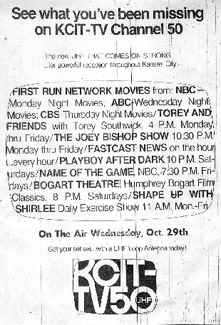The one ray of hope that could have perhaps repaired most of the damage done to the network schedules by the Kansas City affiliates was waiting just around the corner from the beginning of the 1969 fall season. This ray was in the form of an incoming signal from a brand-new independent UHF TV station, KCIT-TV, Channel 50, which signed-on for the first time on Wednesday, October 29th of that year, and the station's history--although far too brief--is worth recounting whether or not you were in its reception area at the time.
